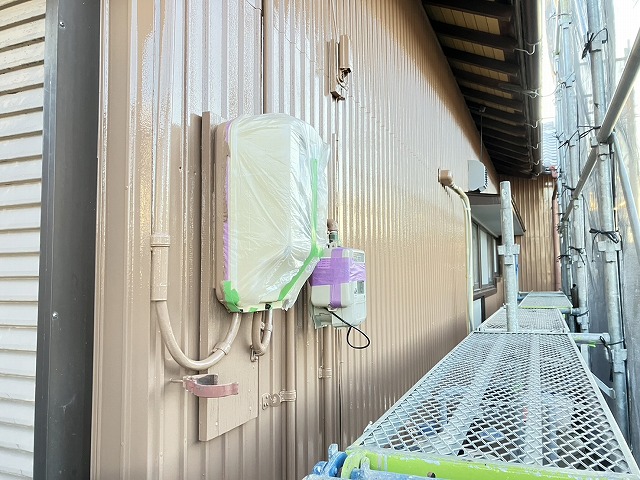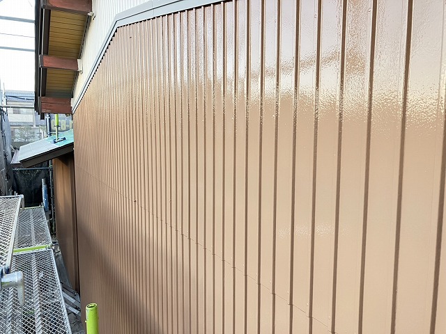 ▶【袋井市|外壁塗装・雨樋交換】大工|外壁トタン部中塗り|2025年11月17日施工