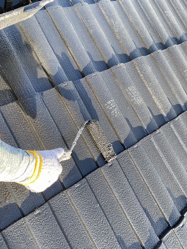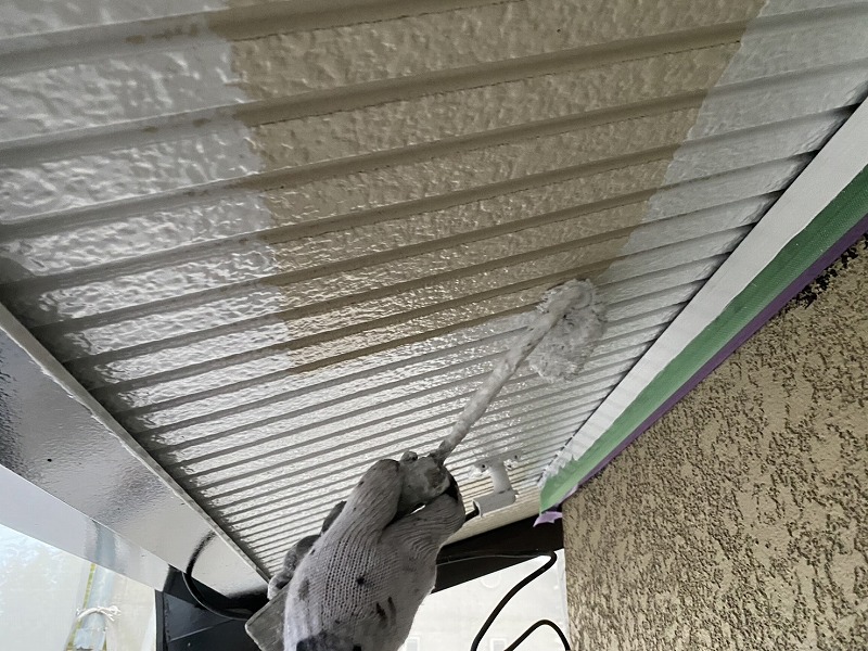 屋根も同様に、中塗りでしっかりと塗膜を形成していきます。