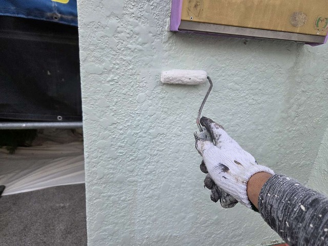 風が強かったため、塗料の飛散に注意しながら作業を進めました。