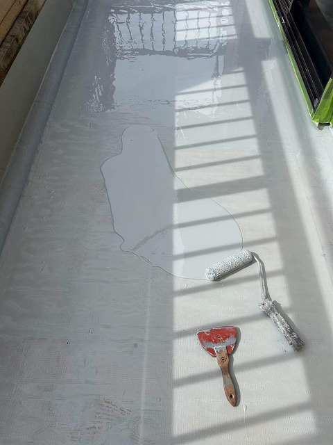 ウレタン防水材を均一に塗布し、防水層を形成しました。