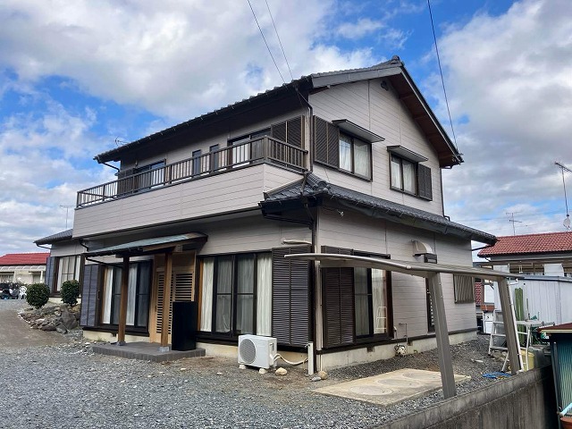 菊川市東横地のO様邸では、外壁塗装とベランダ防水工事の全工程が完了し、最終段階に入りました。