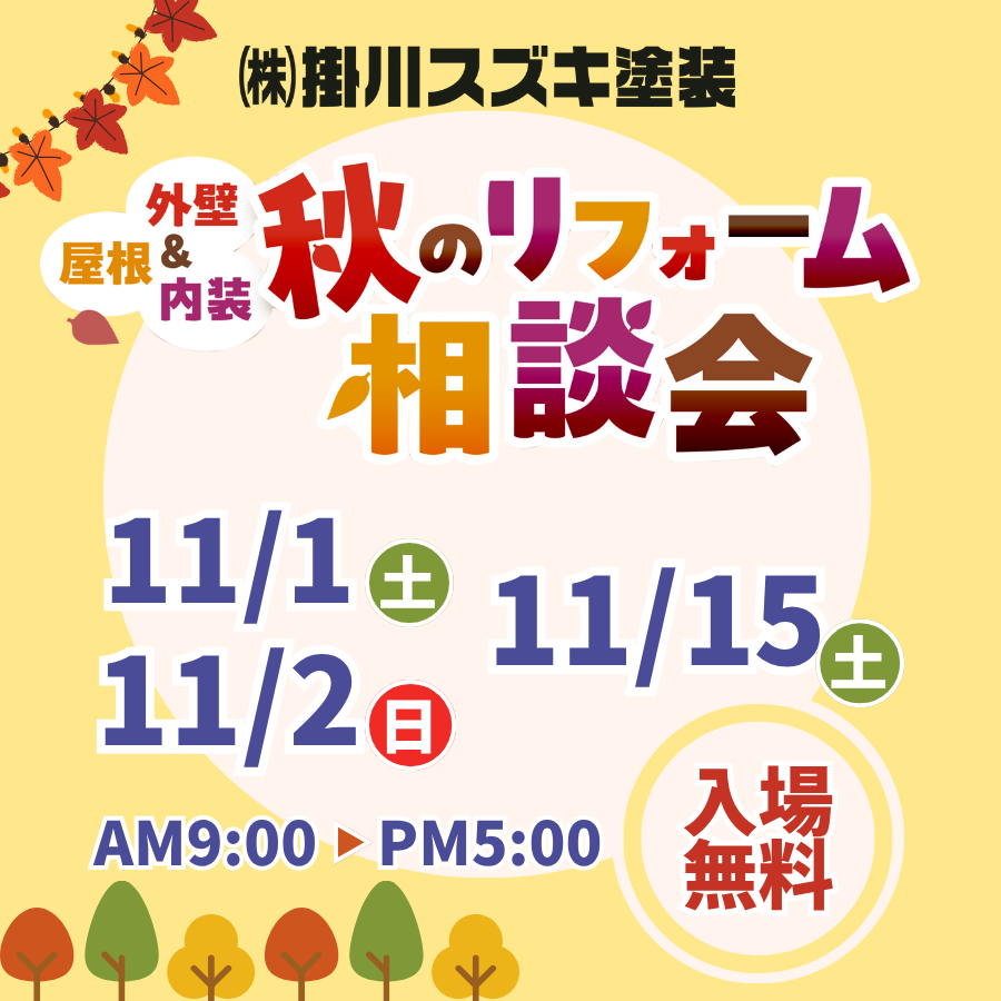 秋のリフォーム相談会|外壁・屋根・内装リフォーム特典盛りだくさん!【掛川・菊川】