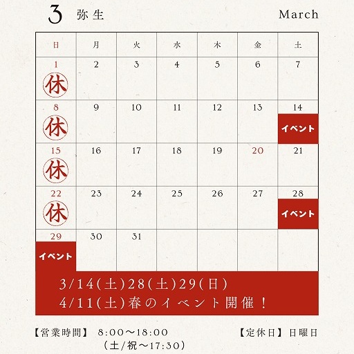 ショールームからのお知らせ〜2026年3月の営業日について〜