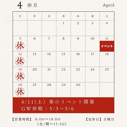 ショールームからのお知らせ〜2026年4月の営業日について〜