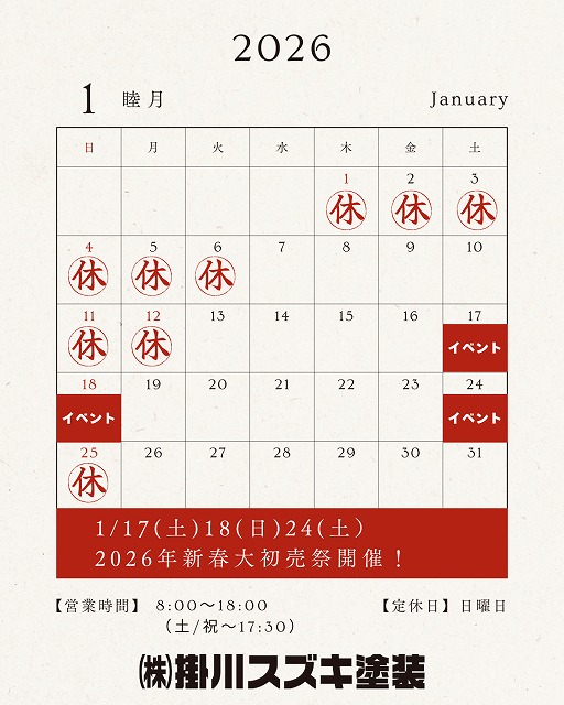 ショールームからのお知らせ〜2026年1月の営業日について〜