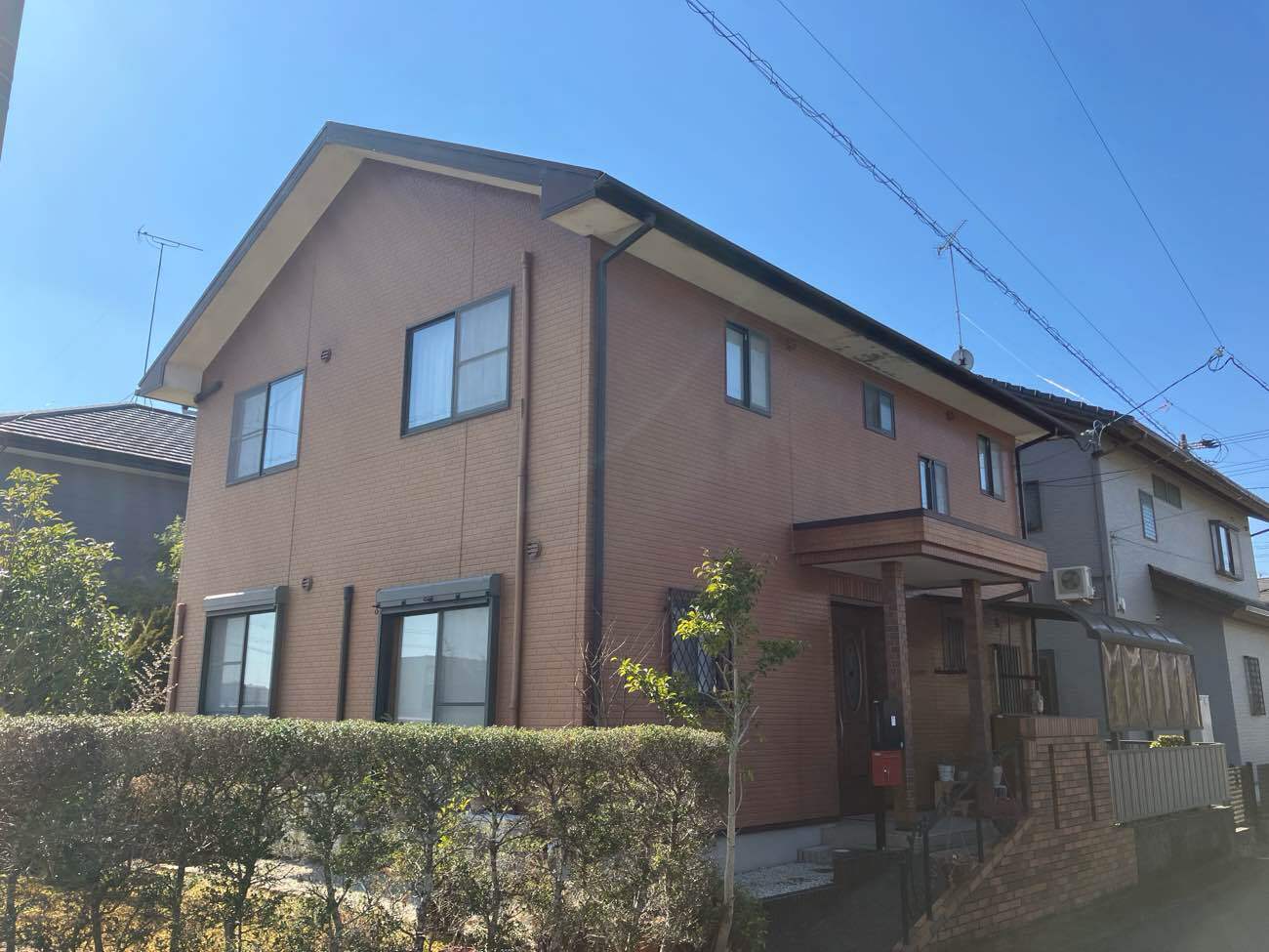 お客様は購入時の外壁の色がお気に入りだったとのことで、「できるだけ当時の雰囲気を取り戻したい」とのご要望をいただきました。以前の所有者様も当社で施工させていただいており、そのご縁とご近所という安心感から、今回もご依頼いただきました。