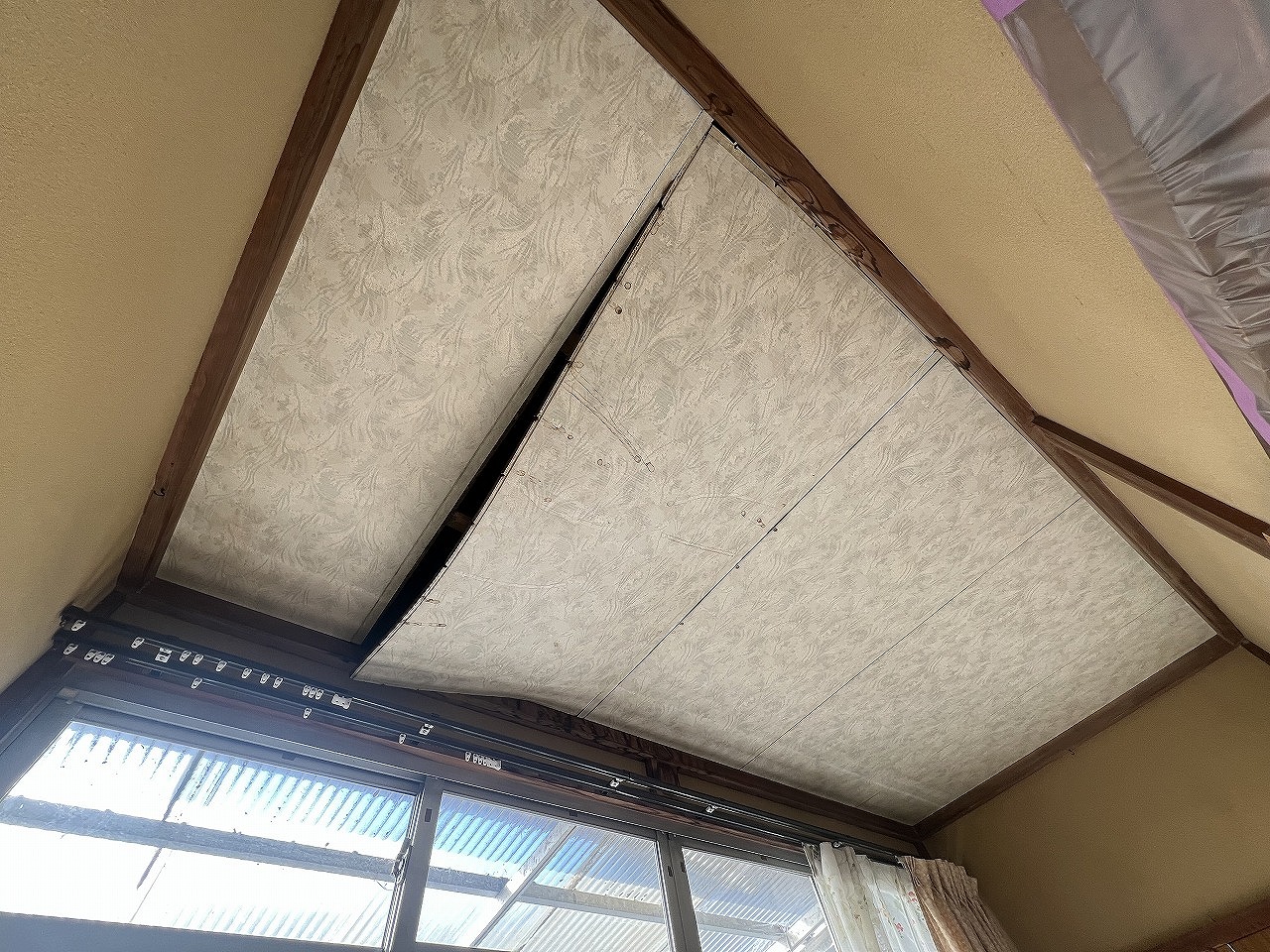 掛川市にお住まいのお客様から、「縁側の天井が落ちかけている」と緊急のご相談をいただきました。