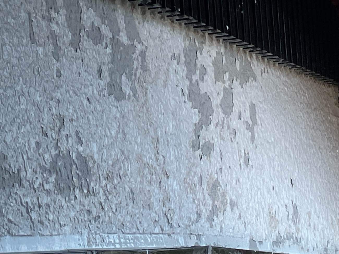 無数に膨れていた塗膜は、大変脆弱になっており水洗浄で簡単に剥がれてしまいます