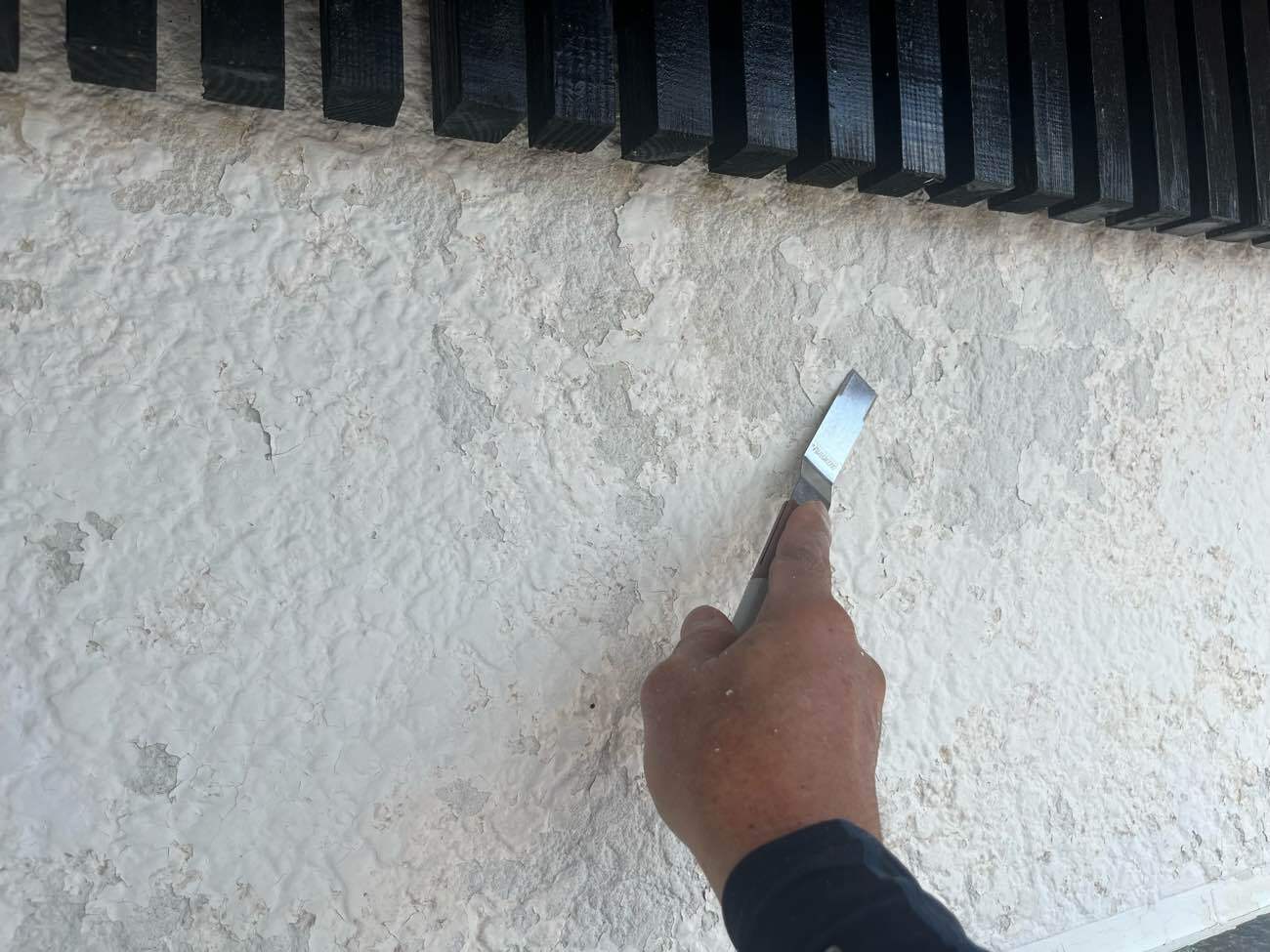 • <strong>外壁 下地処理</strong></br>剥がれかけている塗膜の上に塗装しても、すぐ剥がれてしまうので、全て削ります 外壁 下地処理
