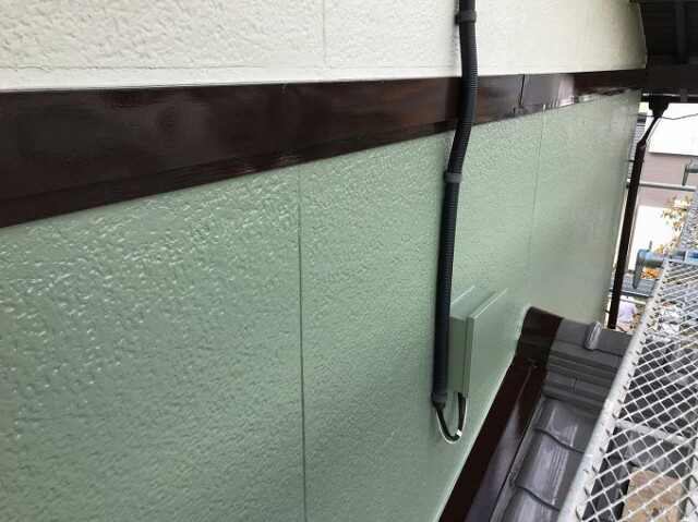 濃色部:スタッコ壁(上塗り塗装) より強靭な塗膜を形成して、耐候性や仕上がりを良くするため、もう一度塗装を施します。