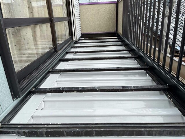 塗装2回目 より強靭な塗膜を形成して、耐候性や仕上がりを良くするため、もう一度、塗装を施します。