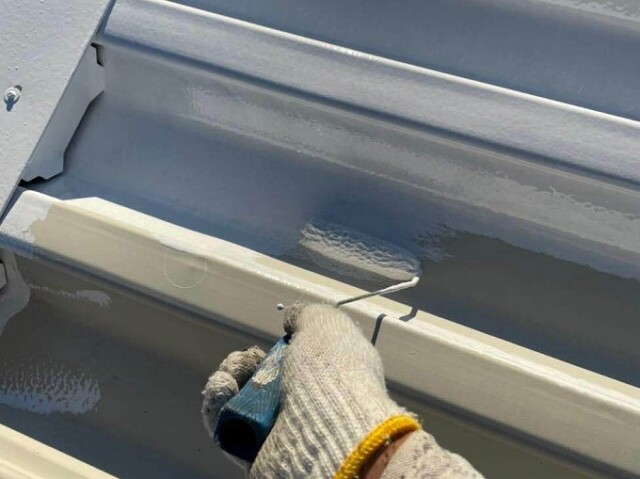塗装2回目 より強靭な塗膜を形成して、耐候性や仕上がりを良くするため、もう一度塗装を施します。